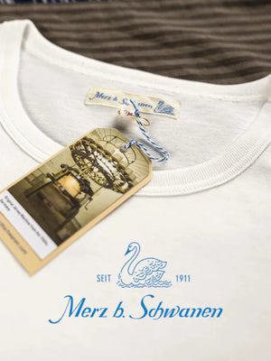 Believe the hype! Knitted on rare loopwheel machines in the Swabian Alb, Merz b. Schwanen creates modern essentials of the highest quality, blending century-old craftsmanship with contemporary design.