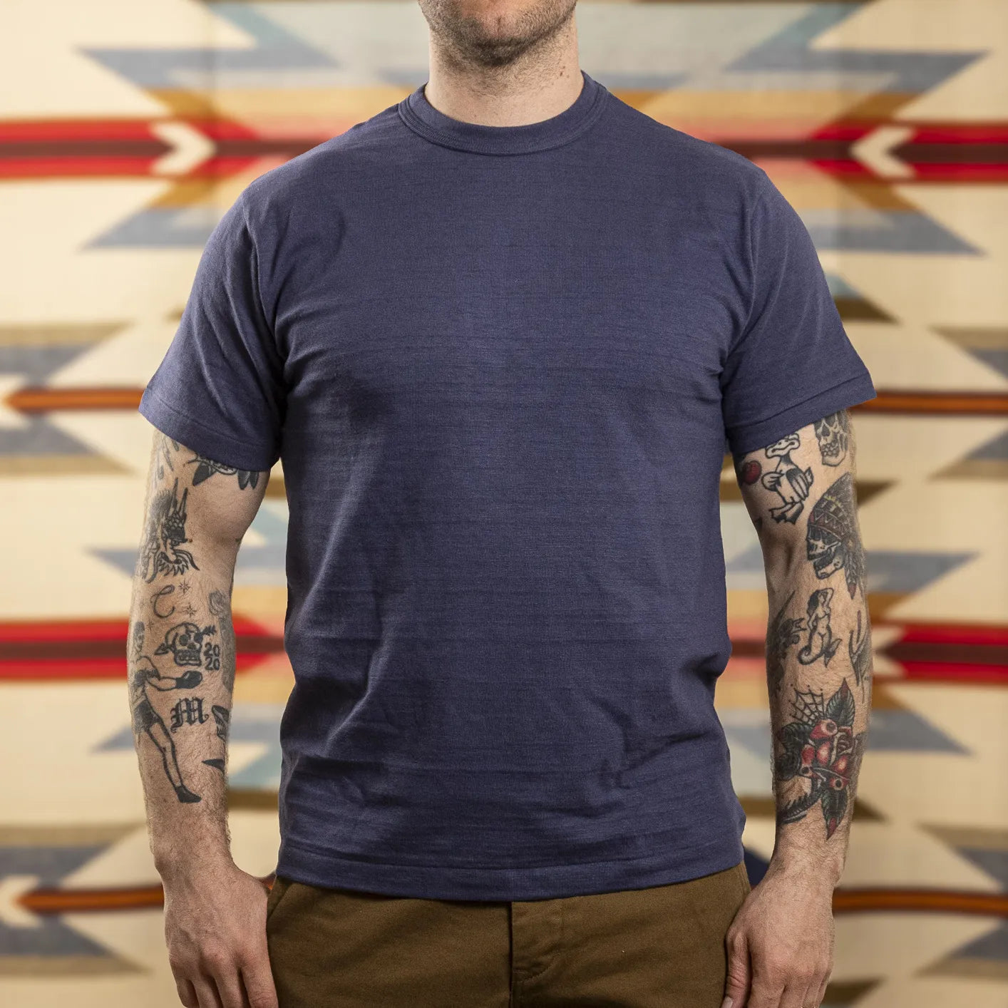 Here it is, the best T-Shirt money can buy! Of course, it is tubular knitted, which means it won’t twist and keep its shape in the wash. Obviously the narrow-designed Crew Neck collar has been reinforced, so it won’t stretch or wear out no matter how hard you try. But what makes this T-Shirt so unique is the superior and slubby textured 6-7oz Wakayama loopwheel cotton fabric. Long story short, this is not just another well-made T-Shirt - it is the Real Deal!