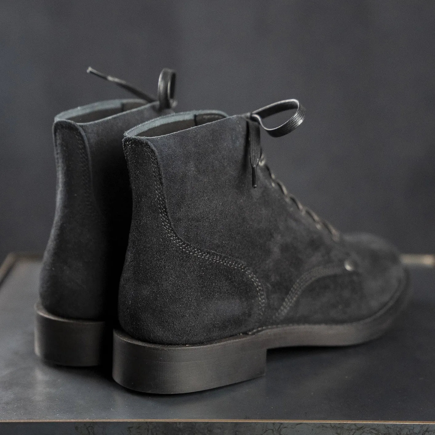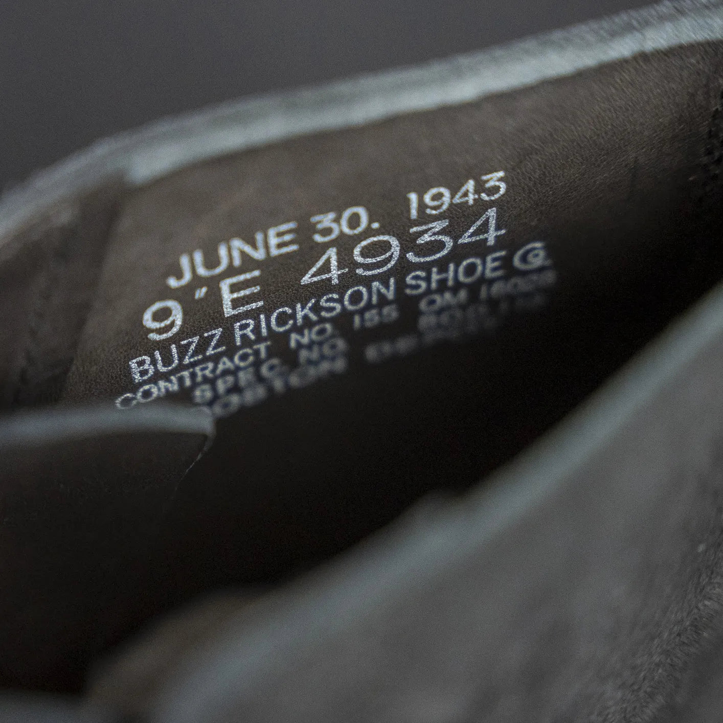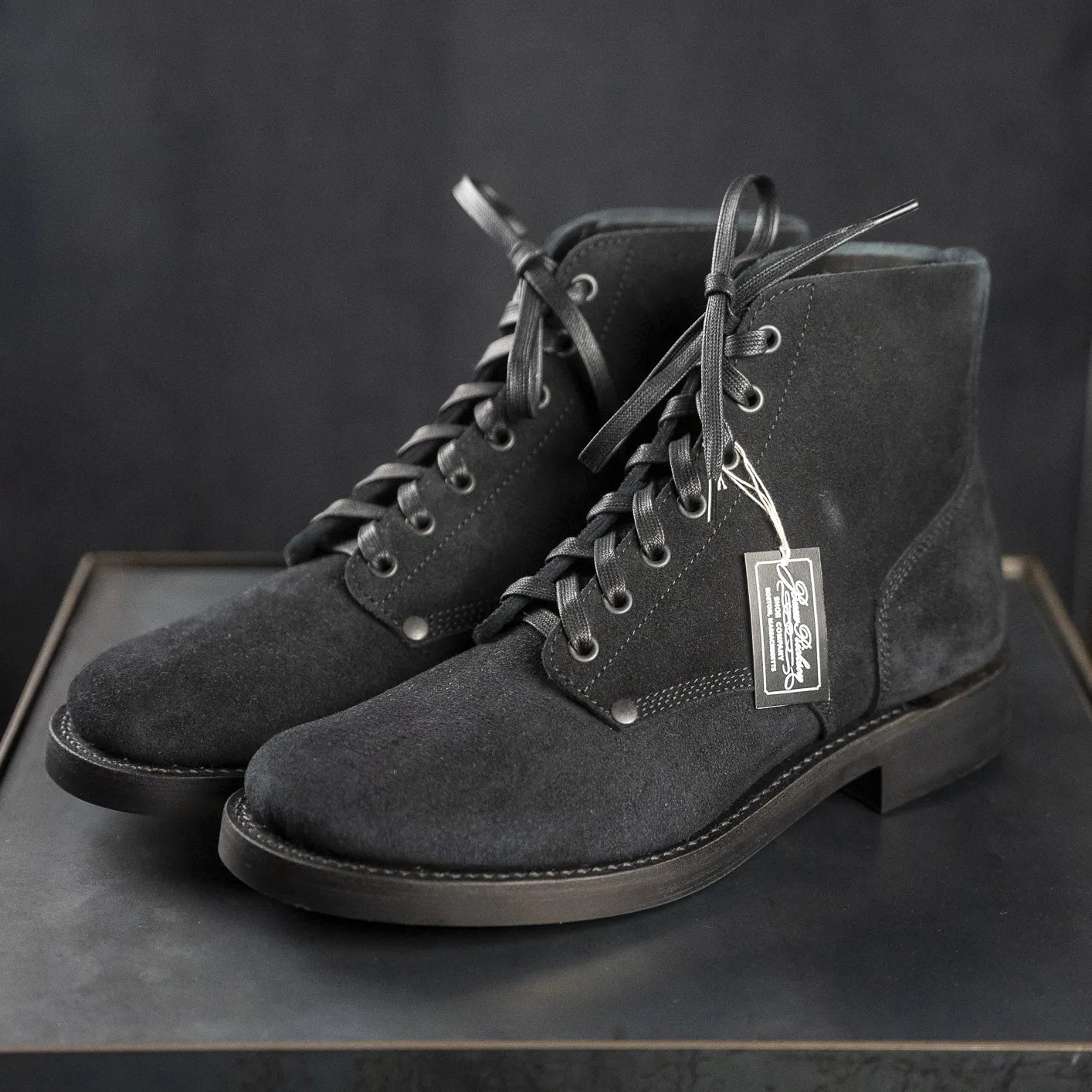 The Buzz Rickson’s William Gibson Black M-43 Boots pay homage to one of the most functional and iconic service shoes ever issued by the U.S. Army. Originally introduced in 1943 under Quartermaster Specification 110, the Type III Service Shoe marked a turning point in military footwear design—built for endurance, not parade polish. Its roughout cowhide upper, turned inside-out to expose the suede side, offered superior resistance to dirt, moisture, and wear, eliminating the need for polishing in the field.