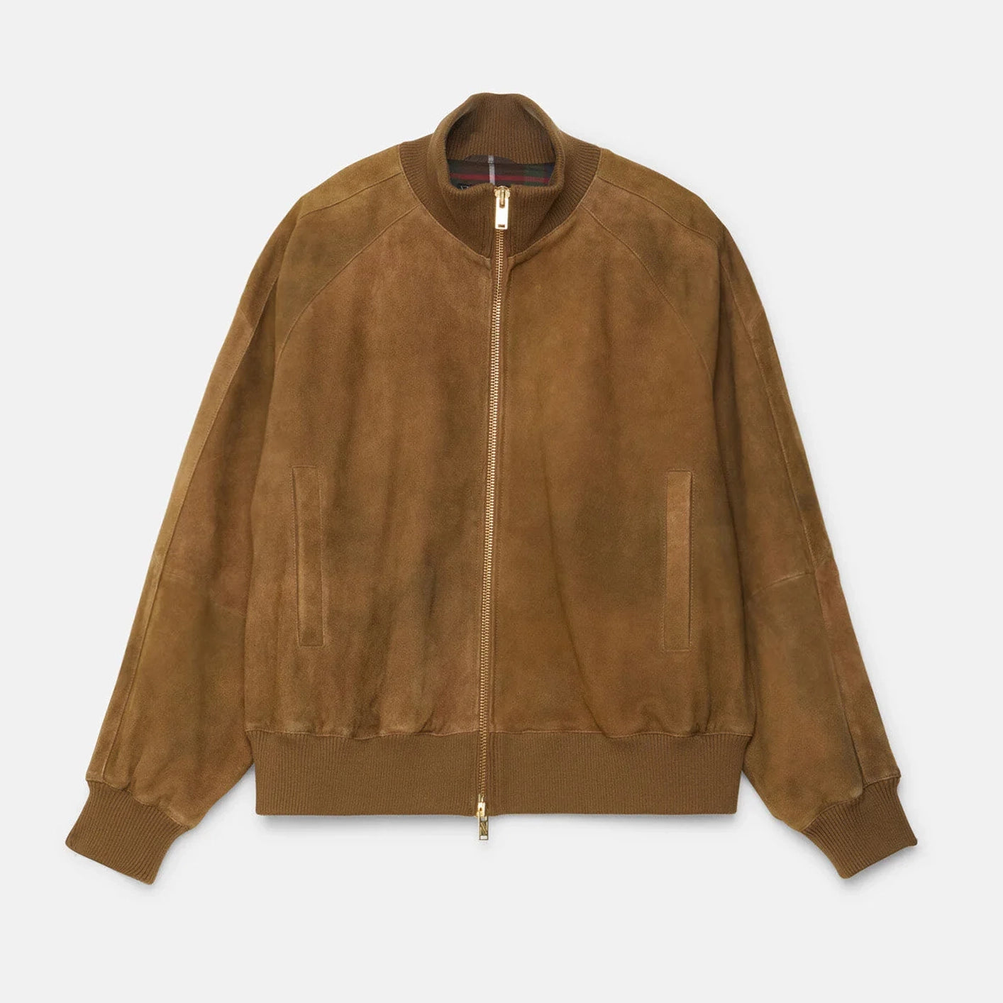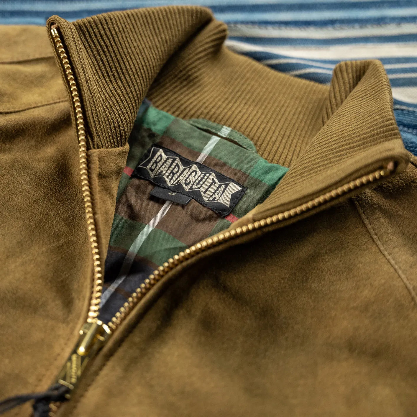 Baracuta G9 Antique Suede Leather Track Jacket – Barley Brown