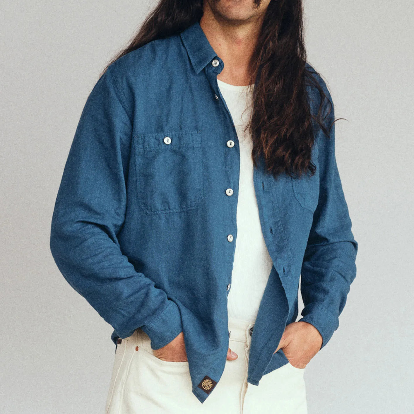 Indigofera 4oz 'McAllen' Cotton Linen Canvas Shirt - Ocean Blue