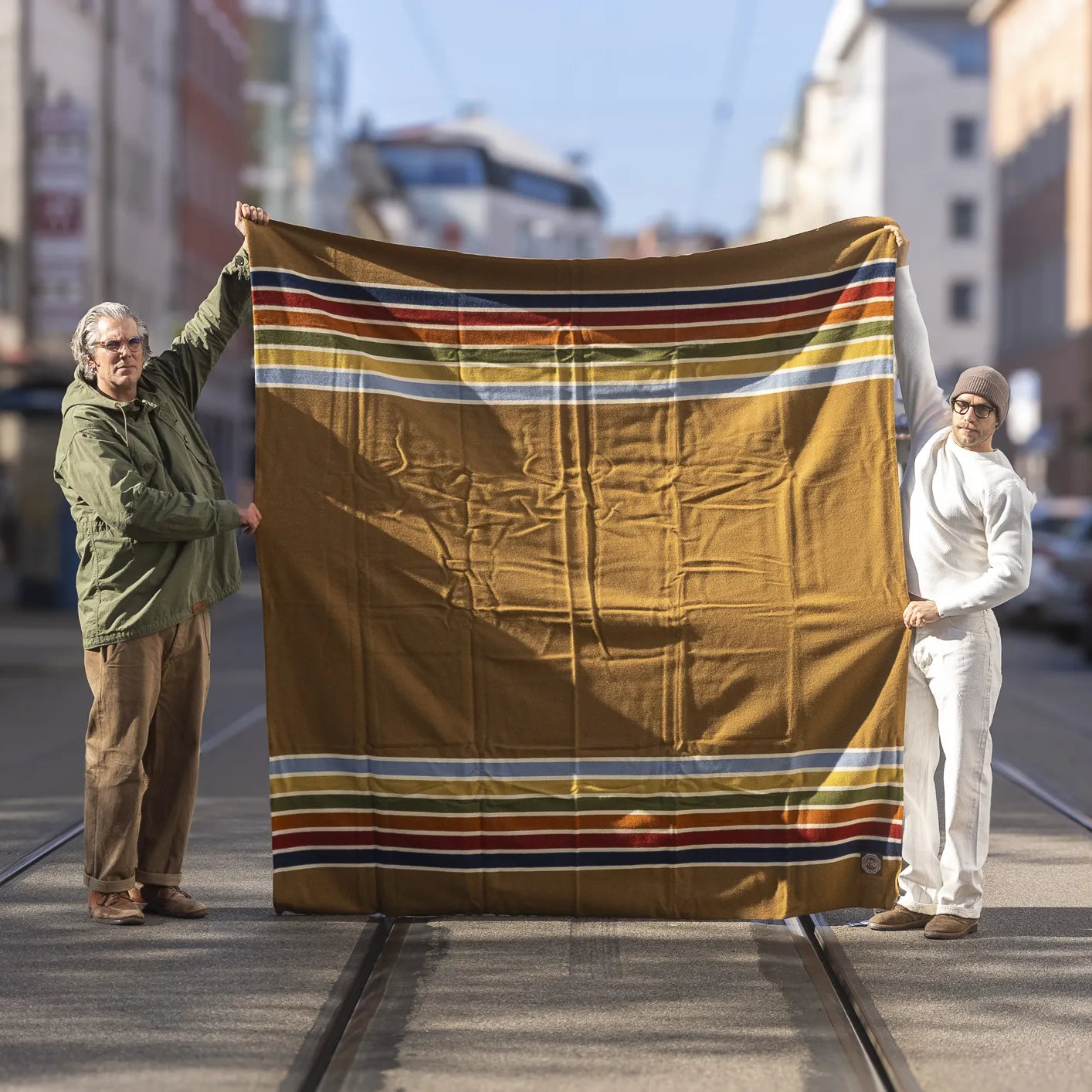 Beneath the wide desert sky, where twisted yucca trees rise against red rock and endless sand, lies the spirit of Joshua Tree National Park. This blanket channels that unique landscape into color and form, woven entirely in Pendleton’s American mills.