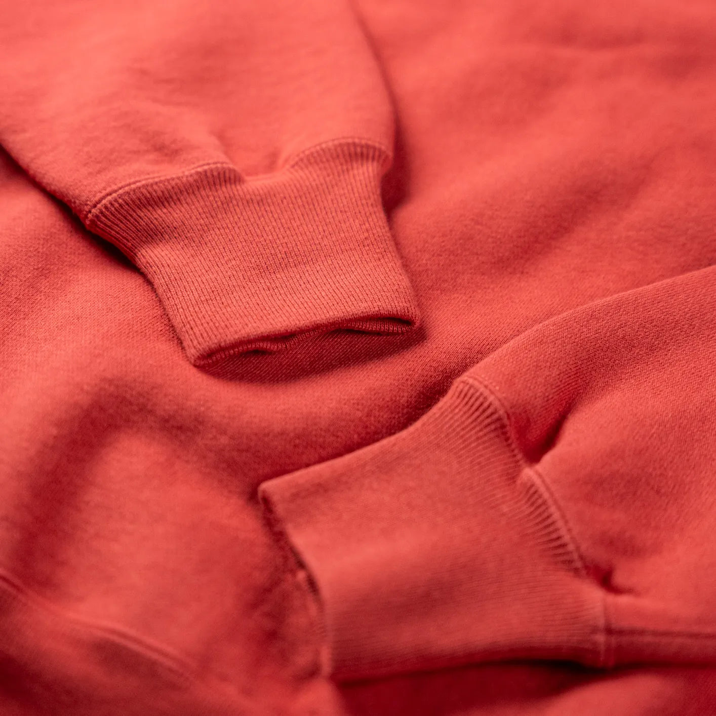 Finished in a rich athletic red, this piece balances utility and nostalgia. The extended rib-knit cuffs and waistband secure warmth and comfort, creating a sweatshirt equally at home on the field, in the workshop, or layered under a jacket. A true expression of Japanese craftsmanship inspired by American heritage, designed to stand the test of time.