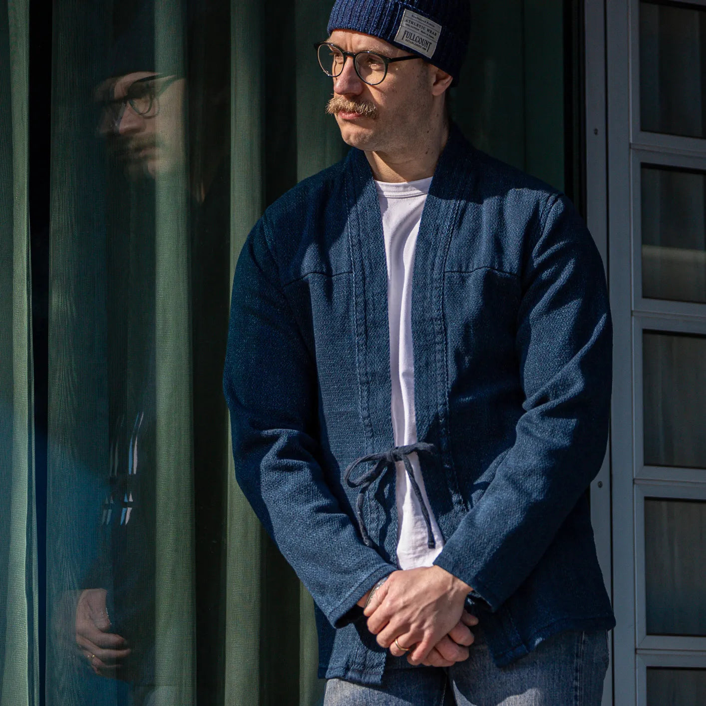 What began as simple workwear for Japanese farmers - the Noragi - has evolved into a timeless silhouette that bridges function, comfort, and quiet tradition. Naked & Famous brings Japanese traditional attire to modern wardrobes, the Yagasuri Kimono Shirt uses the same soft and light 9.5oz jacquard arrow-feather denim weave as the chore coat, rich with tactile depth.