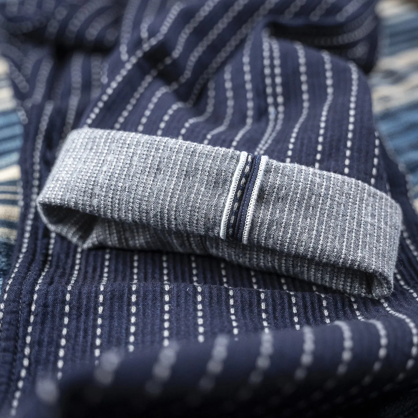 - Pure Blue Japan Thick Stitch Stripe Sashiko Trousers