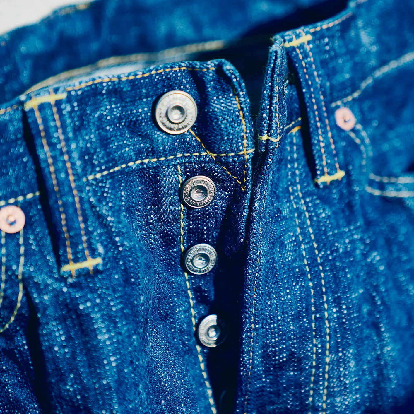 Woven from 17oz extra-slub selvedge denim, the fabric combines strong rope-dyed indigo with a relatively loose weave, resulting in a surprisingly breathable hand and a bright, almost summery tone. Over time, the denim fades with high contrast and depth, enhancing the Murakumo effect with every wear.