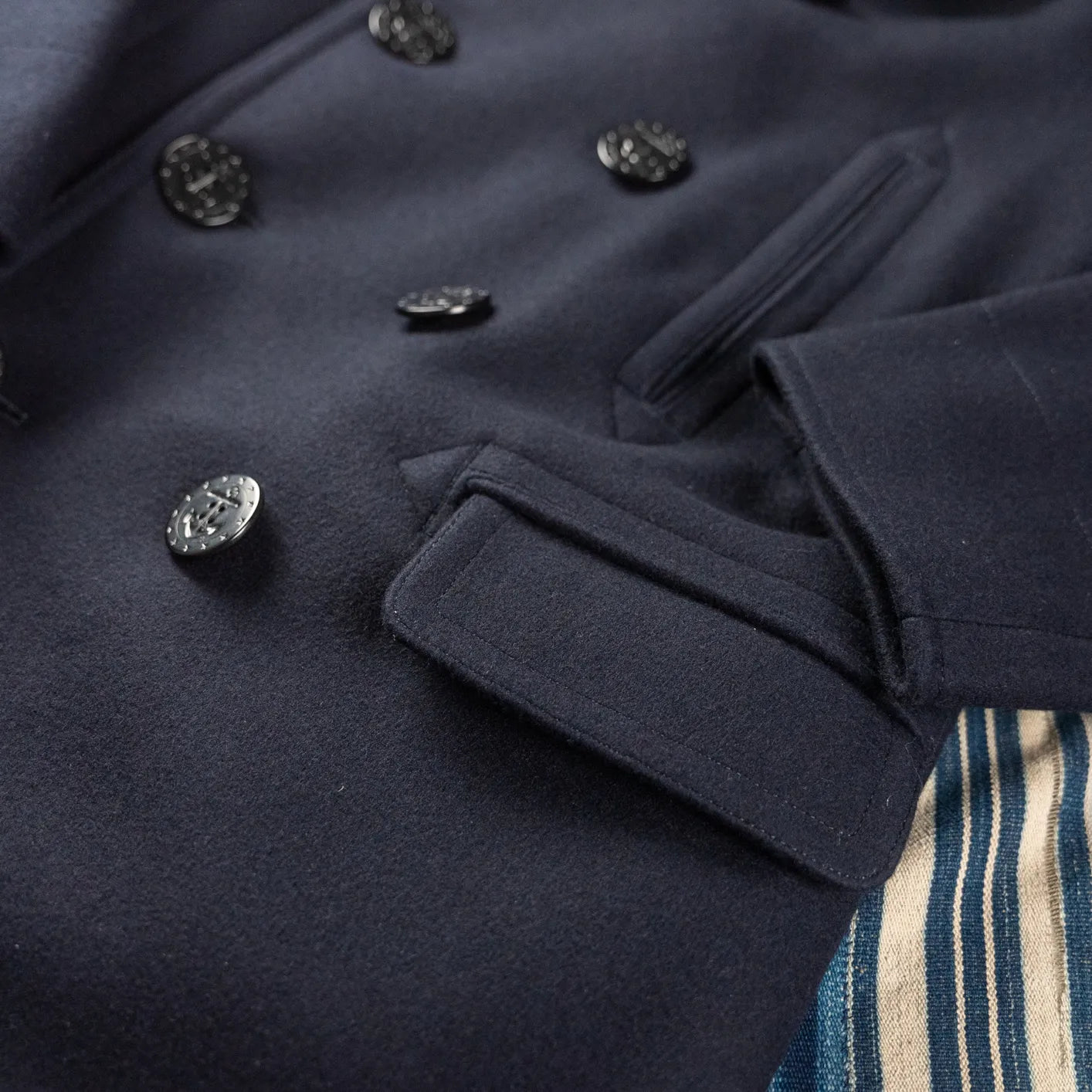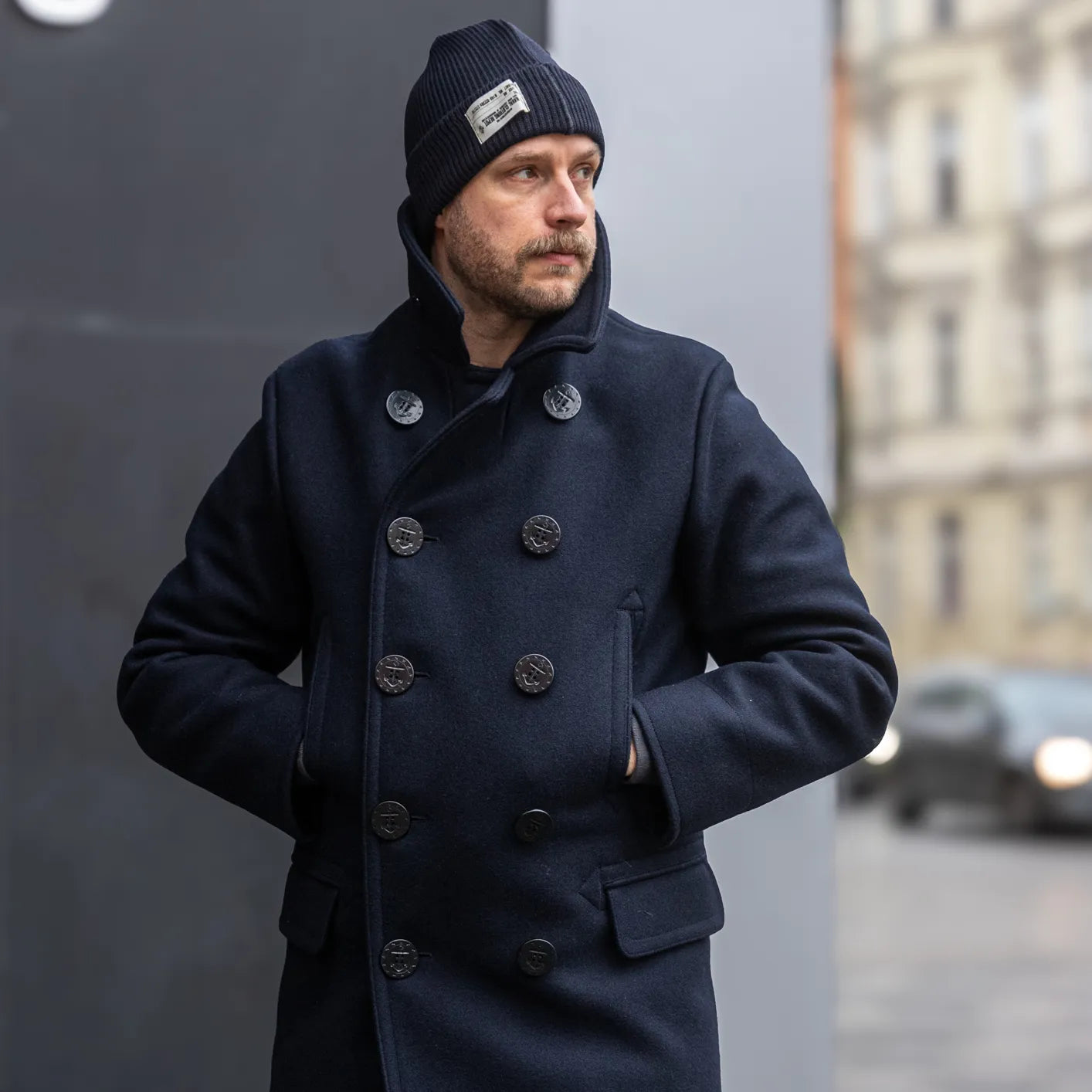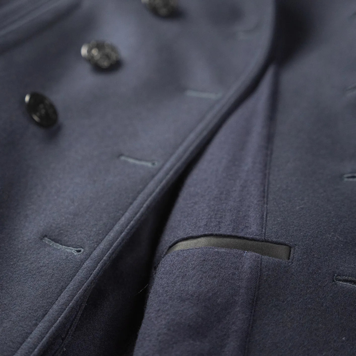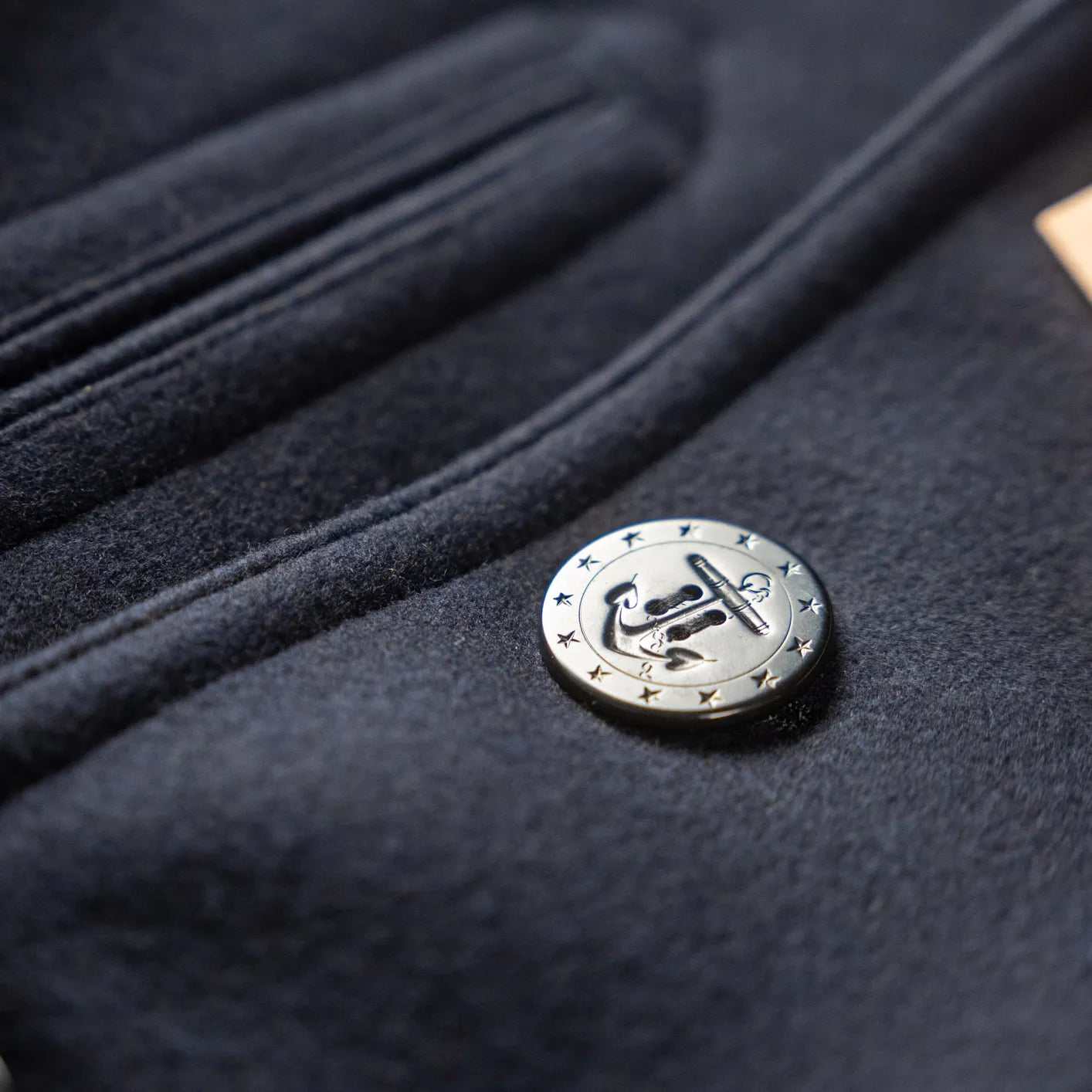 A faithful reproduction of early 20th-century naval outerwear — heavier, longer, and warmer than the standard issue — this coat remains as functional today as it was over a century ago.