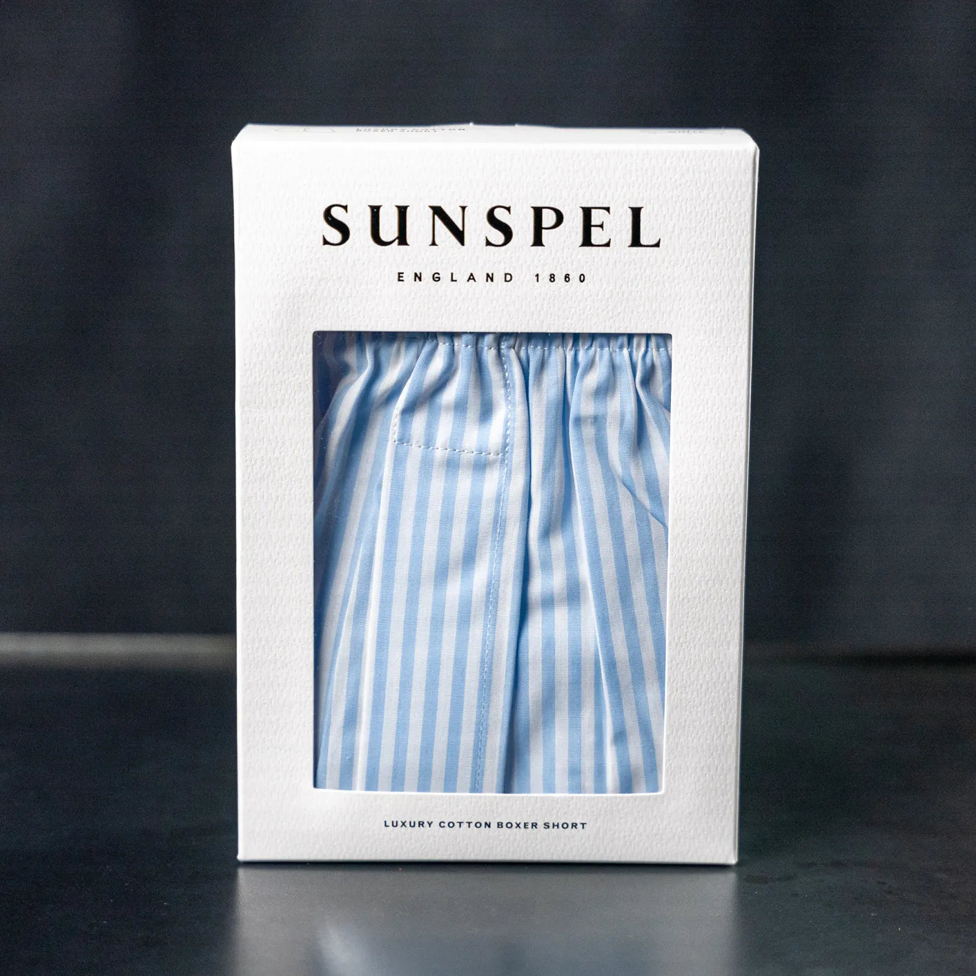Sunspel Classic Boxer Shorts – Stripe / Light Blue