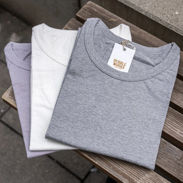 The Dubble Works 6oz Loopwheeled Tank Top combines Americana athletic style with exclusive Tenjuku-knitted (single jersey - lightweight, one-sided knit) premium-grade fabric. This classic 1950s straight-fit undershirt, is tubular-knitted and produced in-house by Sankei Meriyasu using slow, low-tension knitting methods. This results in a smooth yet dense surface with natural stretch and excellent durability. A high-end basic for everyone and all year round!