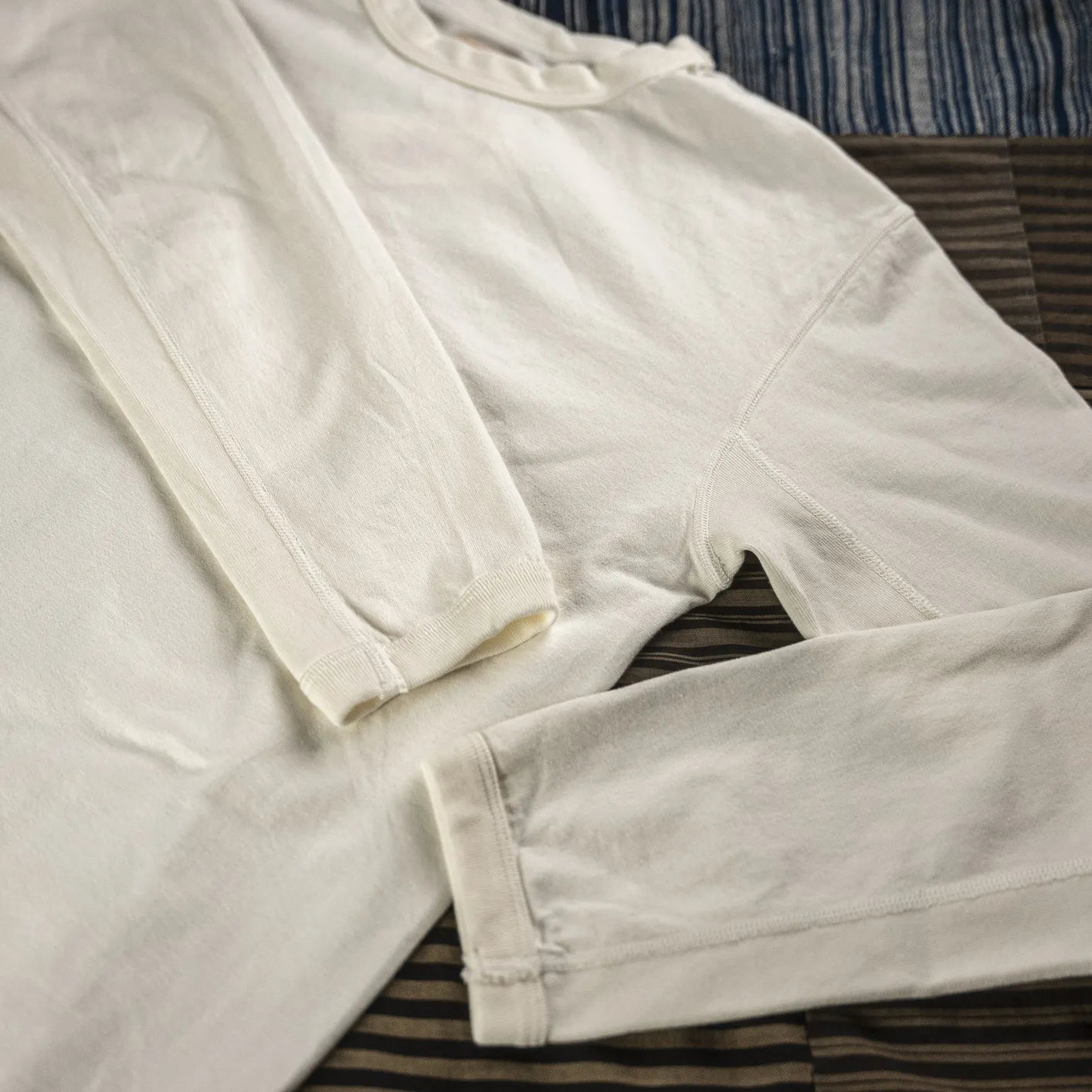 Made in Japan from 100% cotton, the shirt features Fullcount’s original 8.4oz 30/2 tight-tension jersey, woven on vintage machines using air-spun yarn that traps tiny air pockets for softness and breathability.