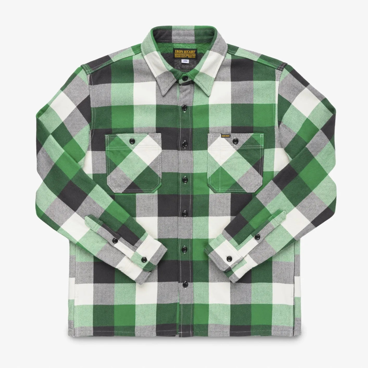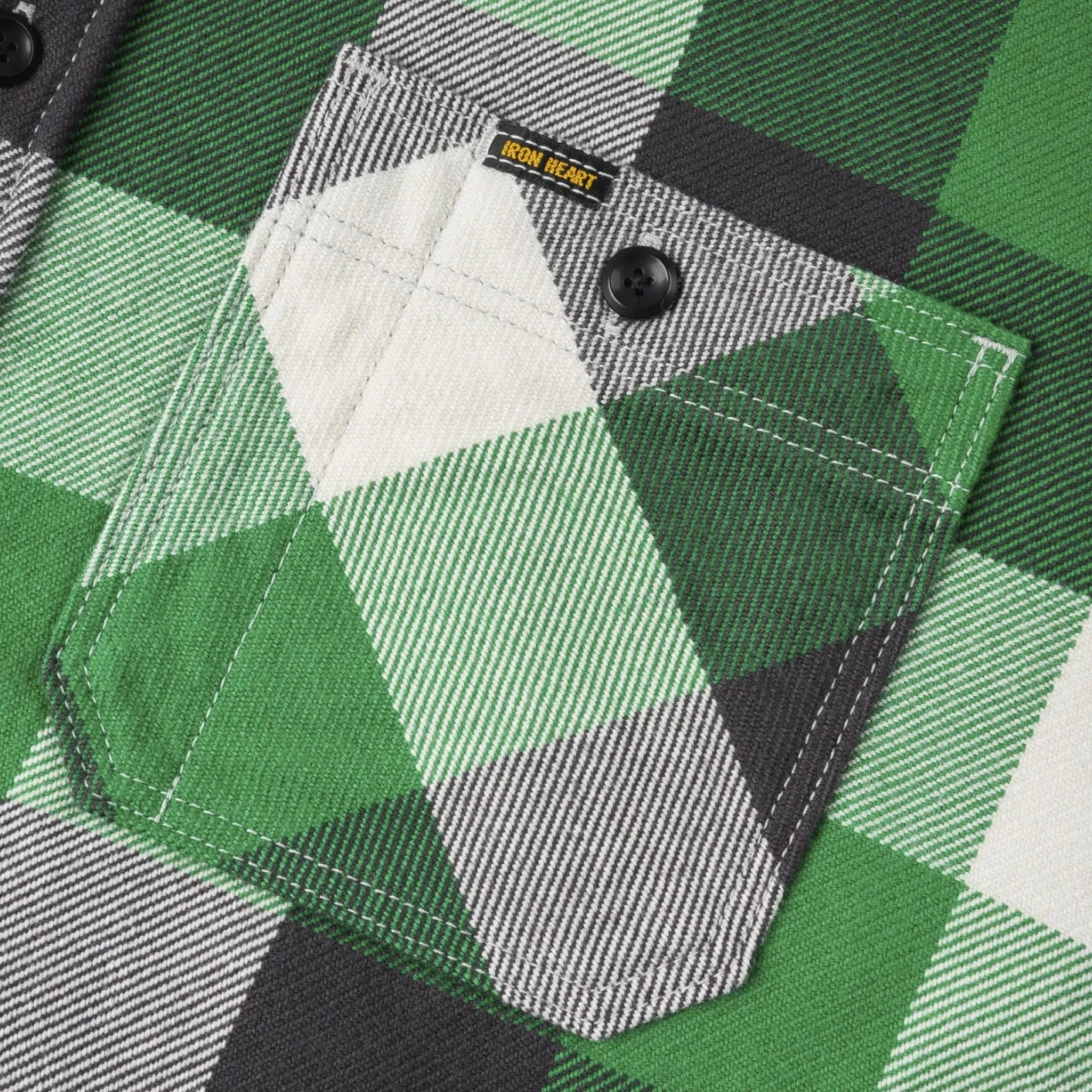 Iron Heart 12oz Ultra Heavy Flannel Vintage Check Work Overshirt - Green / IHSH-428
