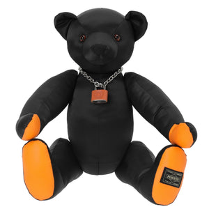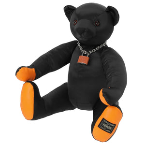 The Tanker Grizzly Bear is a collector's item and a favorite not only for devoted fans of Porter Yoshida Co. Handcrafted in Japan, its head, hands, and feet can move freely, and the charm of the glass eyes is irresistible. The glass for the eyes is sourced from Germany and was used for antique bears from the 1940s to the 1960s. The padlock with brass chain and engraved glass leather is not only a loving detail but also accentuates the design of the Porter Nylon Bear.