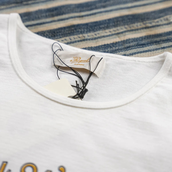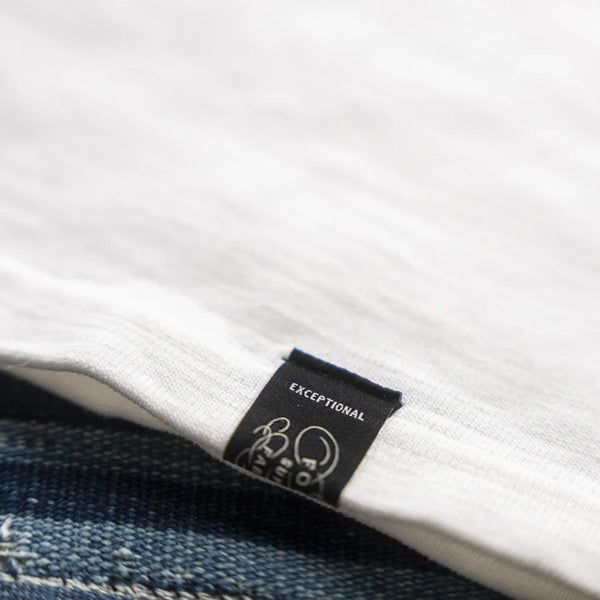 What truly sets this tee apart is the premium Japanese Rice Cotton - a rare, tight-gauge jersey knit that blends structure, breathability, and comfort like no other. Made from long-staple fibers and spun using a method that traps air inside the yarn. The result: a dry hand feel, natural stretch, and serious shape retention at heavy 9.5oz weight. Combined with a wide collar, this makes it stand out from most of your other printed tees!