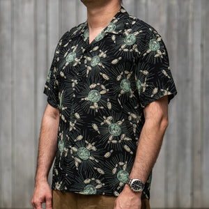 A Star of Hollywood Open Collar Shirt featuring an original 1950s “Perfect Strike” design, that pays homage to the outbreak of the American bowling boom. Printed bowling shirts are quite rare and are high-priced items among Vintage collectors.