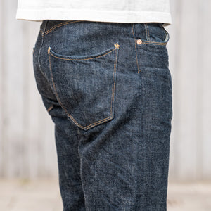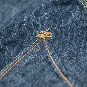 Stevenson Overall’s Ventura is the brands modern standard jeans, featuring a versatile slim straight silhouette with a little taper below the knee. Stevenson Overall used their original 13oz selvedge denim, which is exclusively woven for them by renowned Kuroki mill. The denim features an uneven slubby texture with a beautiful subtle green cast. Besides its modern fit the construction and design details root back to the Golden Age of American Workwear (e.g. single needle flat-felled seams, hand-sewn curved belt loops, leather-backed Buttons).
