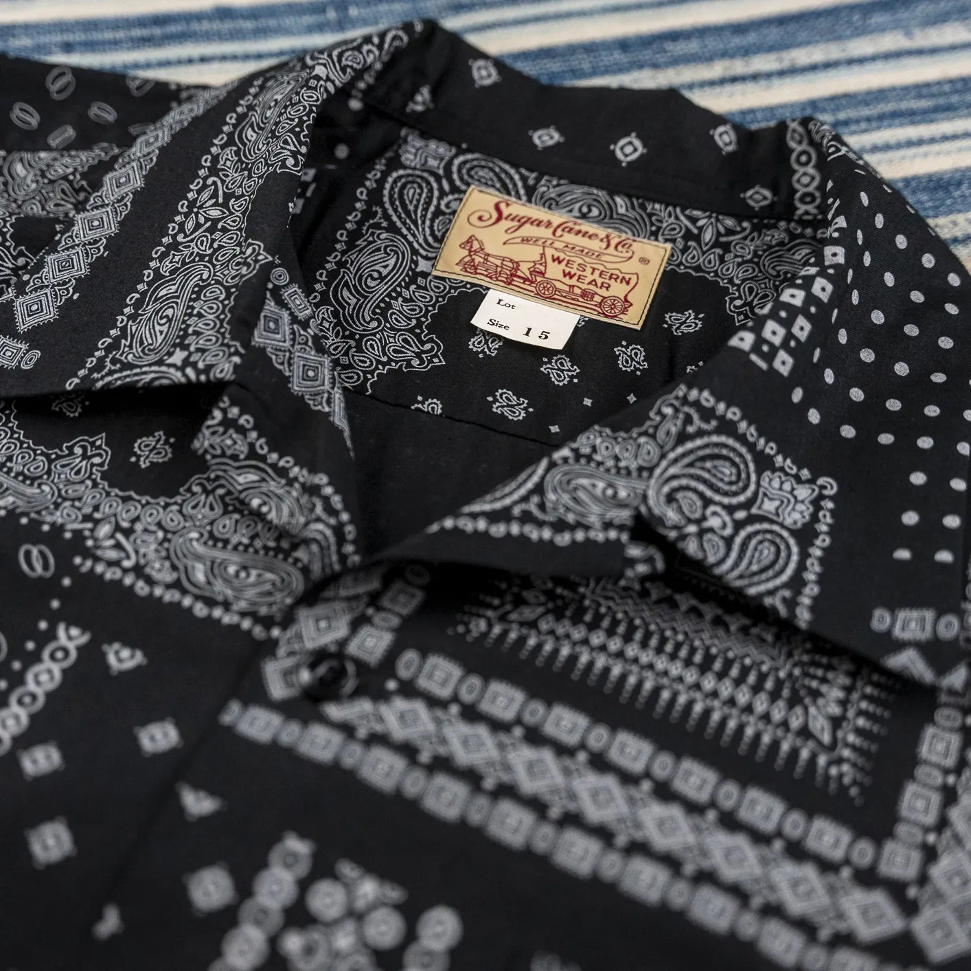 Sugar Cane Bandana Patchwork Camp Collar Shirt - Black