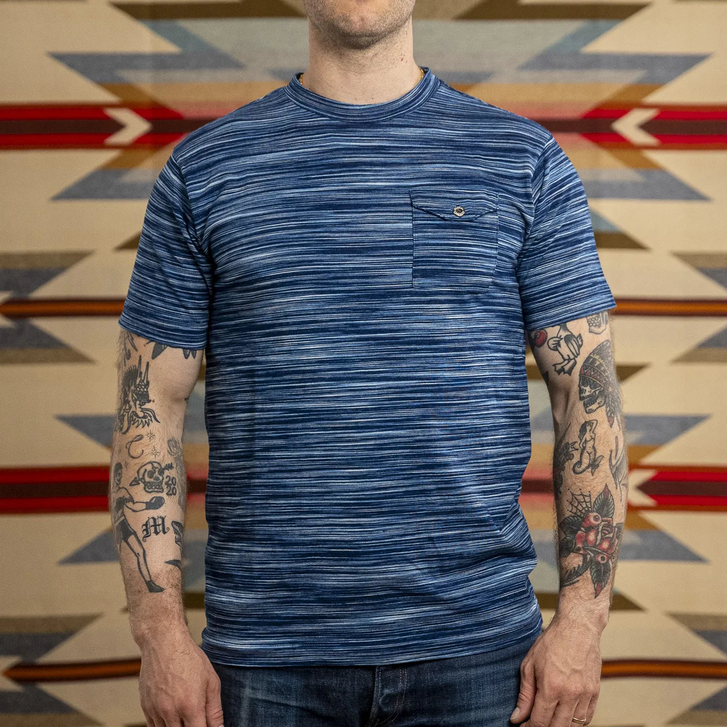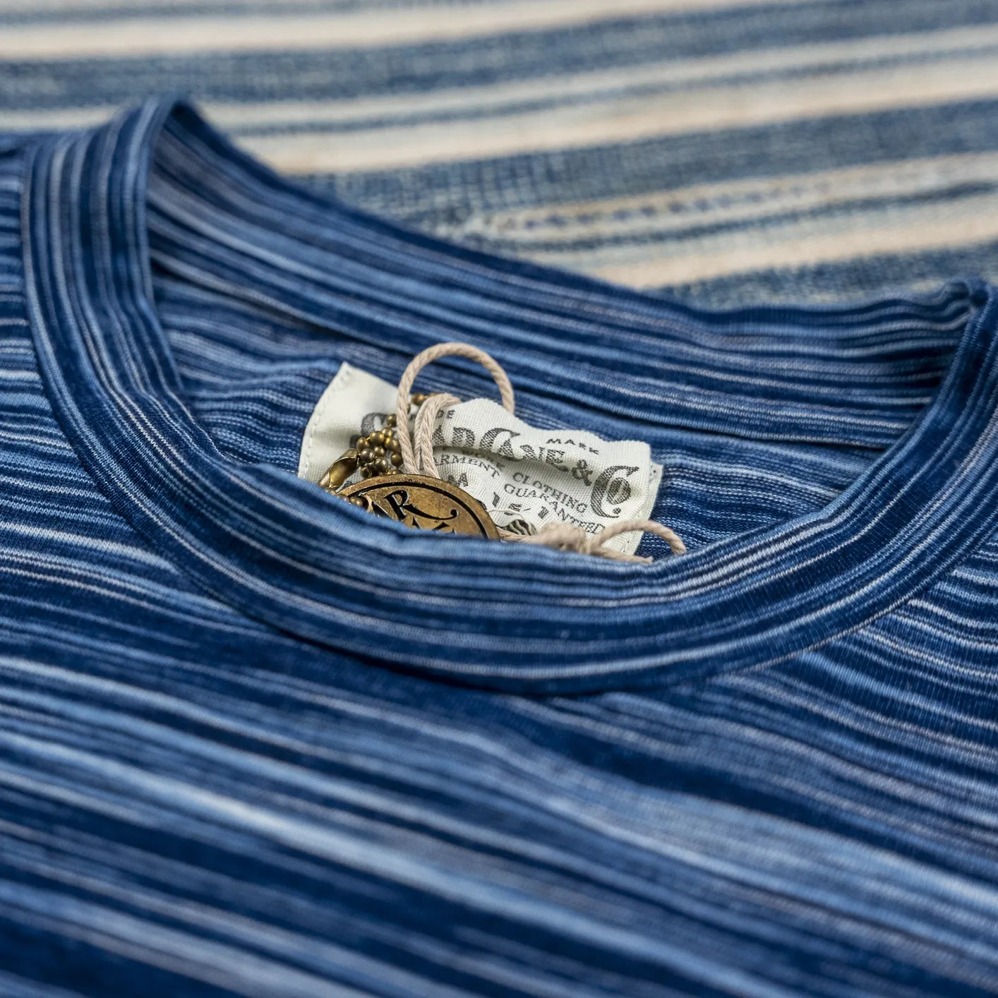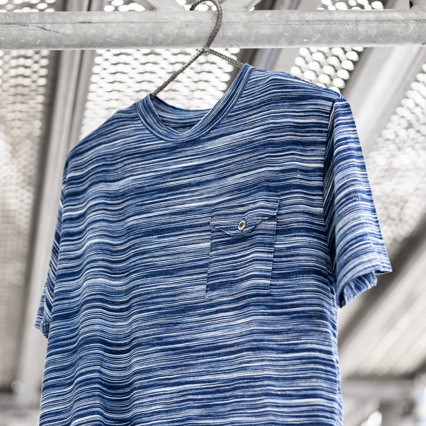 Sugar Cane ‘Fiction Romance’ Indigo Border Pocket T-Shirt - Indigo Skein Dyed