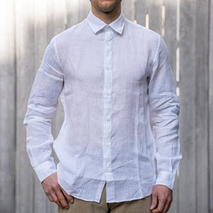 Experience the epitome of summer comfort with Sunspel's linen shirt, expertly crafted for a cool and breathable feel. Meticulously woven by Italian artisans at Tessitura Monti, renowned for their expertise in creating the finest shirting fabrics since 1911, this shirt utilizes specially selected extra fine linen fibers from France for an exceptionally soft handle. Whether worn alone or layered over a T-shirt, embrace the secret to achieving a casual summer look.